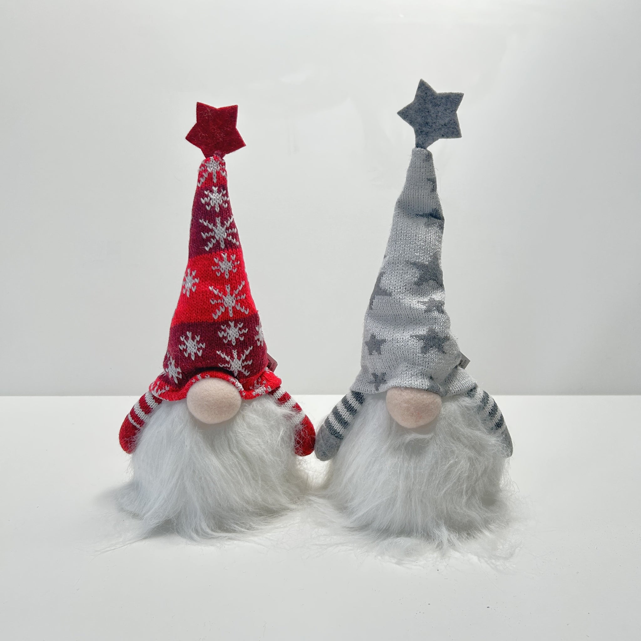 Bring a warm glow and Nordic charm to your Christmas display with these adorable light up gonk heads. Each gonk features a soft, fluffy beard and a tall knitted hat decorated with festive patterns, choose between a classic red snowflake design or a stylish grey star design. Hidden inside, a gentle warm white LED light illuminates the gonk’s beard, creating a cosy, magical effect perfect for winter evenings.
