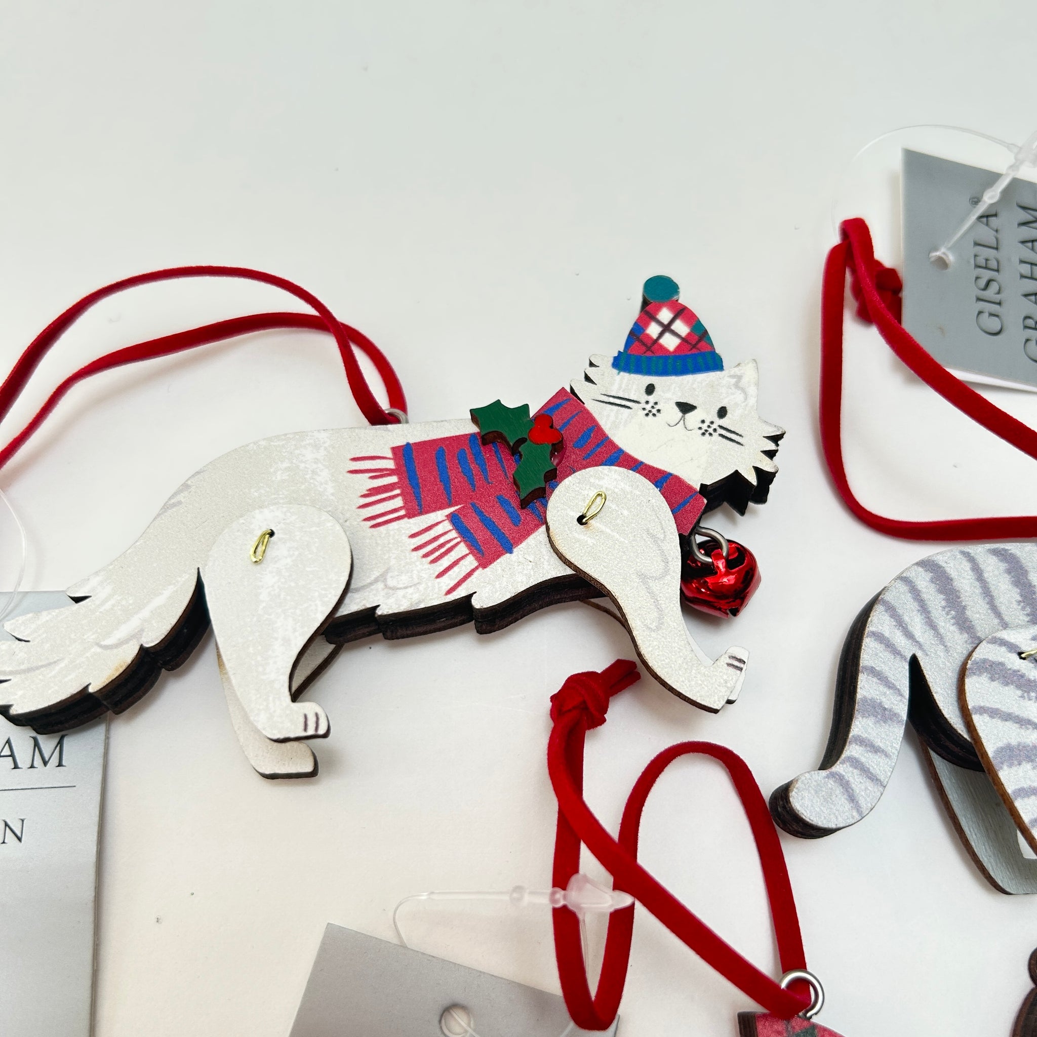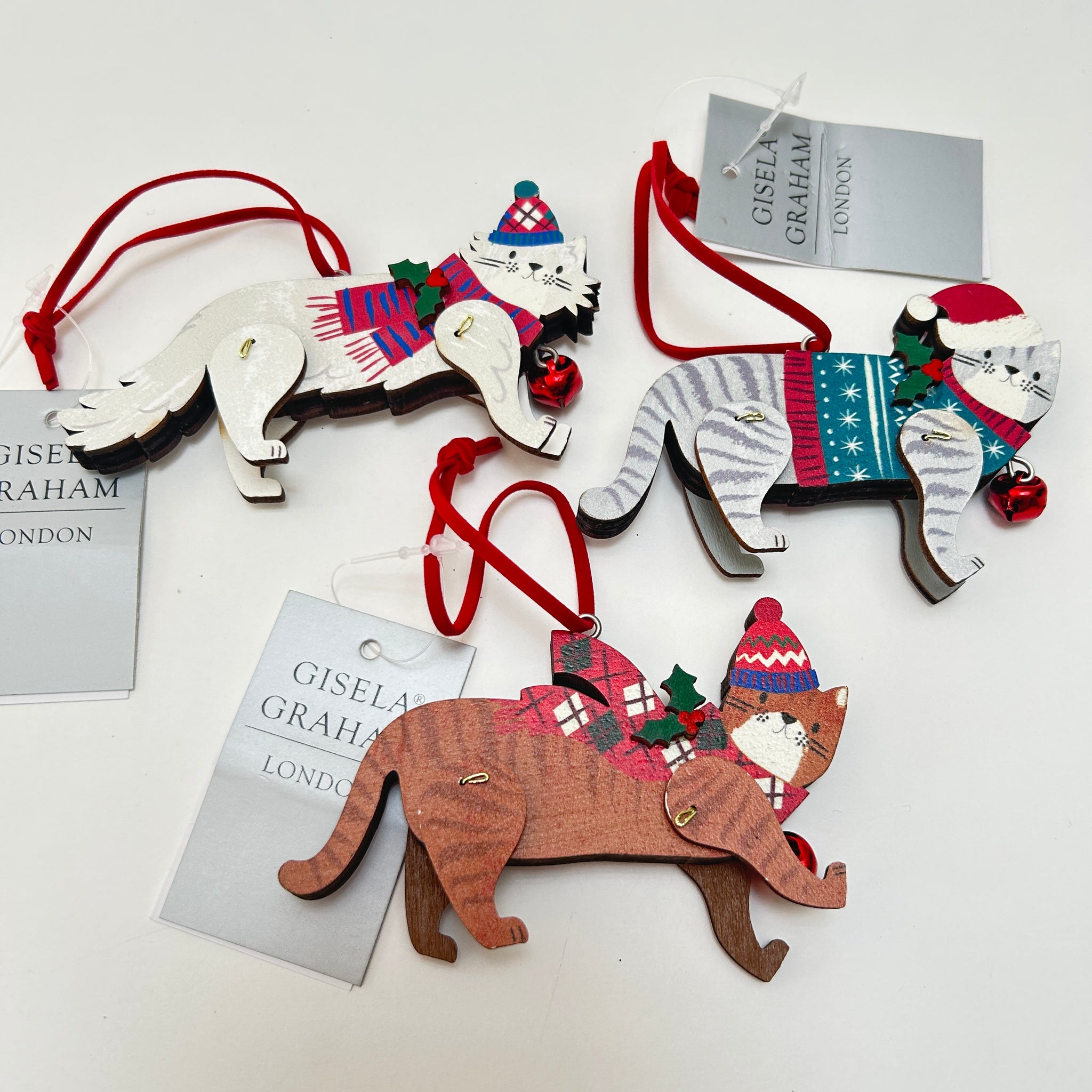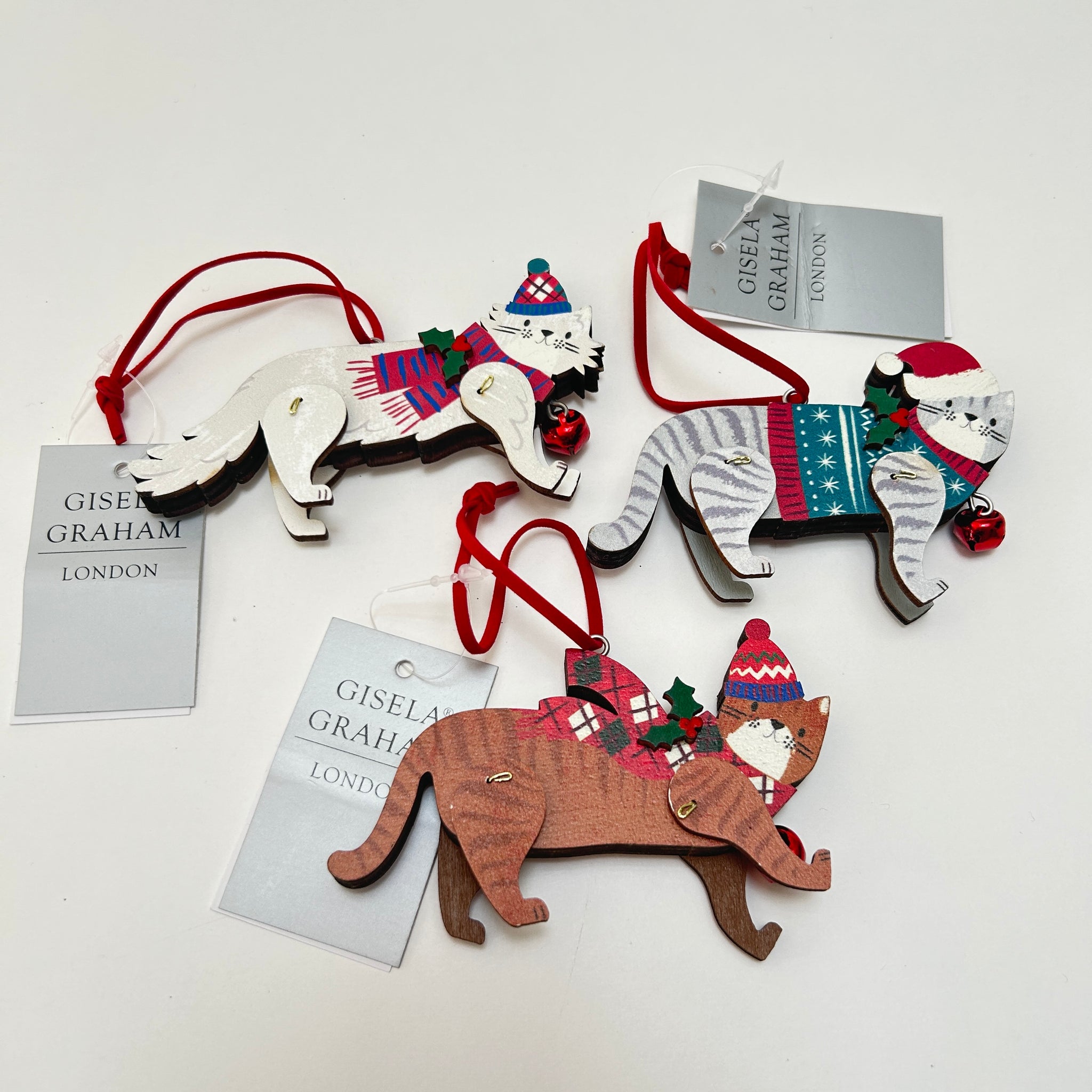 Add a dash of feline charm to your festive décor with this delightful set of 3 wooden cat decorations by Gisela Graham. Each stylish kitty is dressed for winter in cosy jumpers, scarves, and hats, complete with festive embellishments and jingle bells.