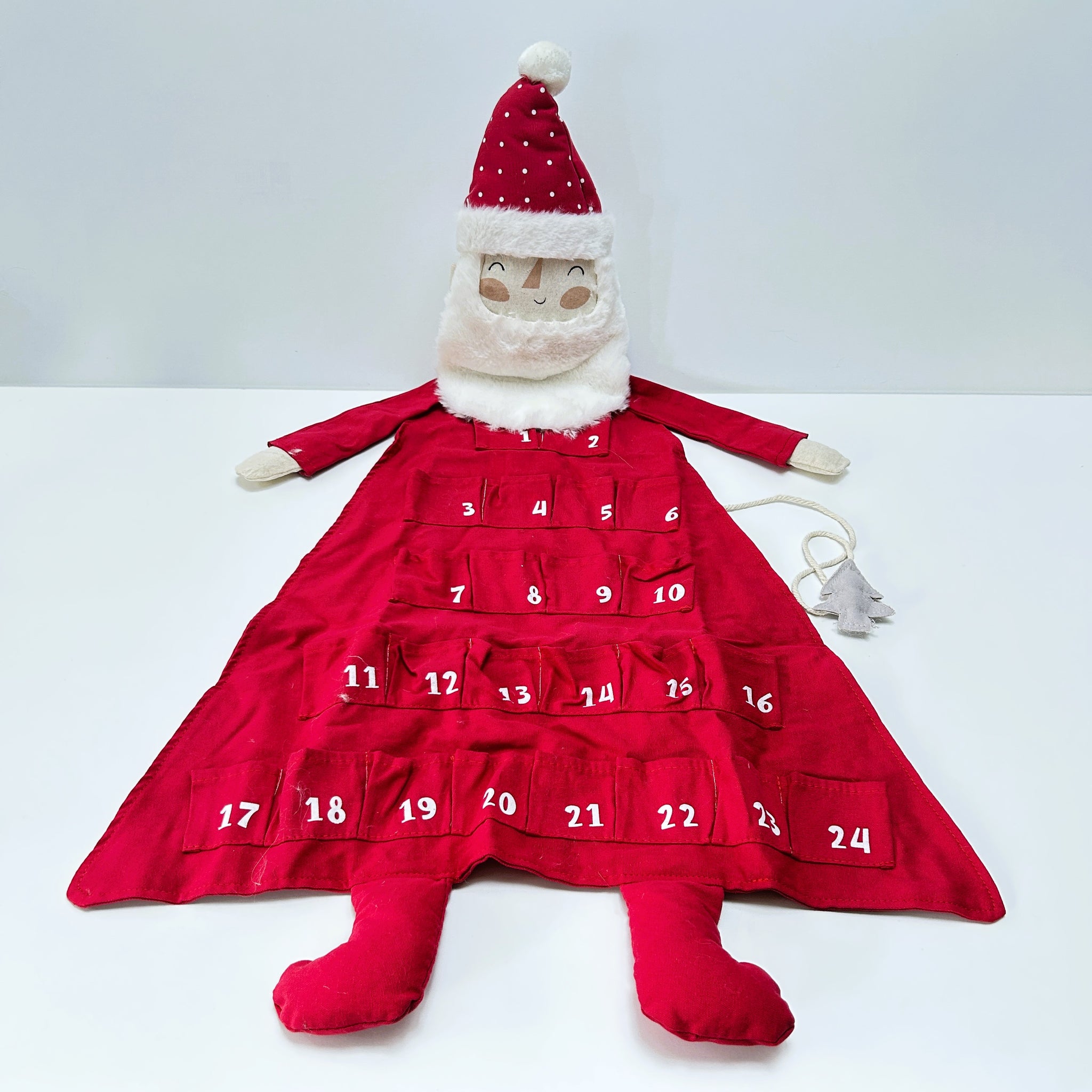 Count down the days to Christmas in festive style with this large felt Santa advent calendar. This calendar is both practical and decorative, bringing a touch of tradition and charm to your home throughout December.