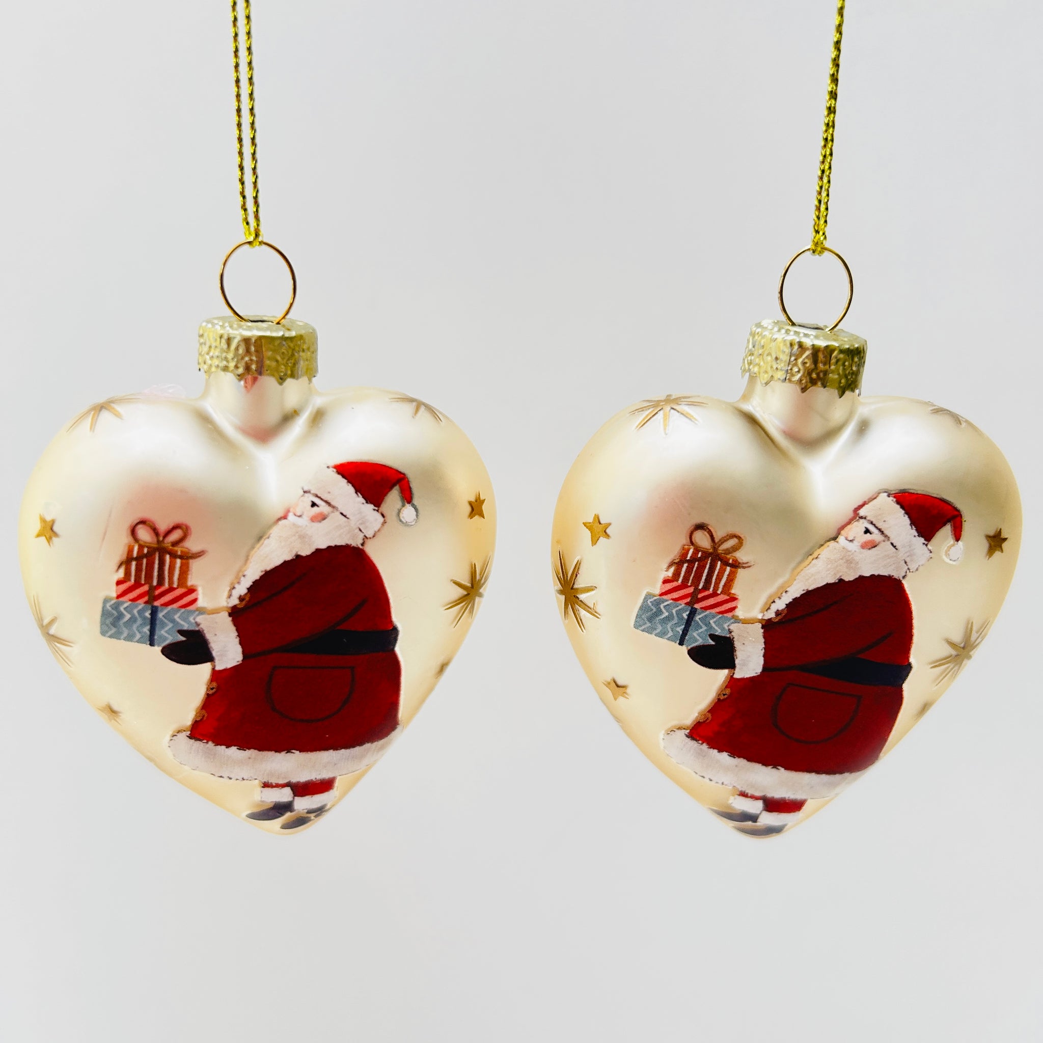 This charming Nostalgia Santa Gold Heart Bauble is crafted in a soft satin gold finish, and features a vintage-style illustration of Santa Claus carrying a festive stack of presents, surrounded by delicate golden starbursts. With its classic red, white, and gold palette and timeless design, this bauble evokes a cosy, traditional feel. A perfect addition to nostalgic or vintage-inspired Christmas themes, it brings heartwarming charm to your tree year after year.