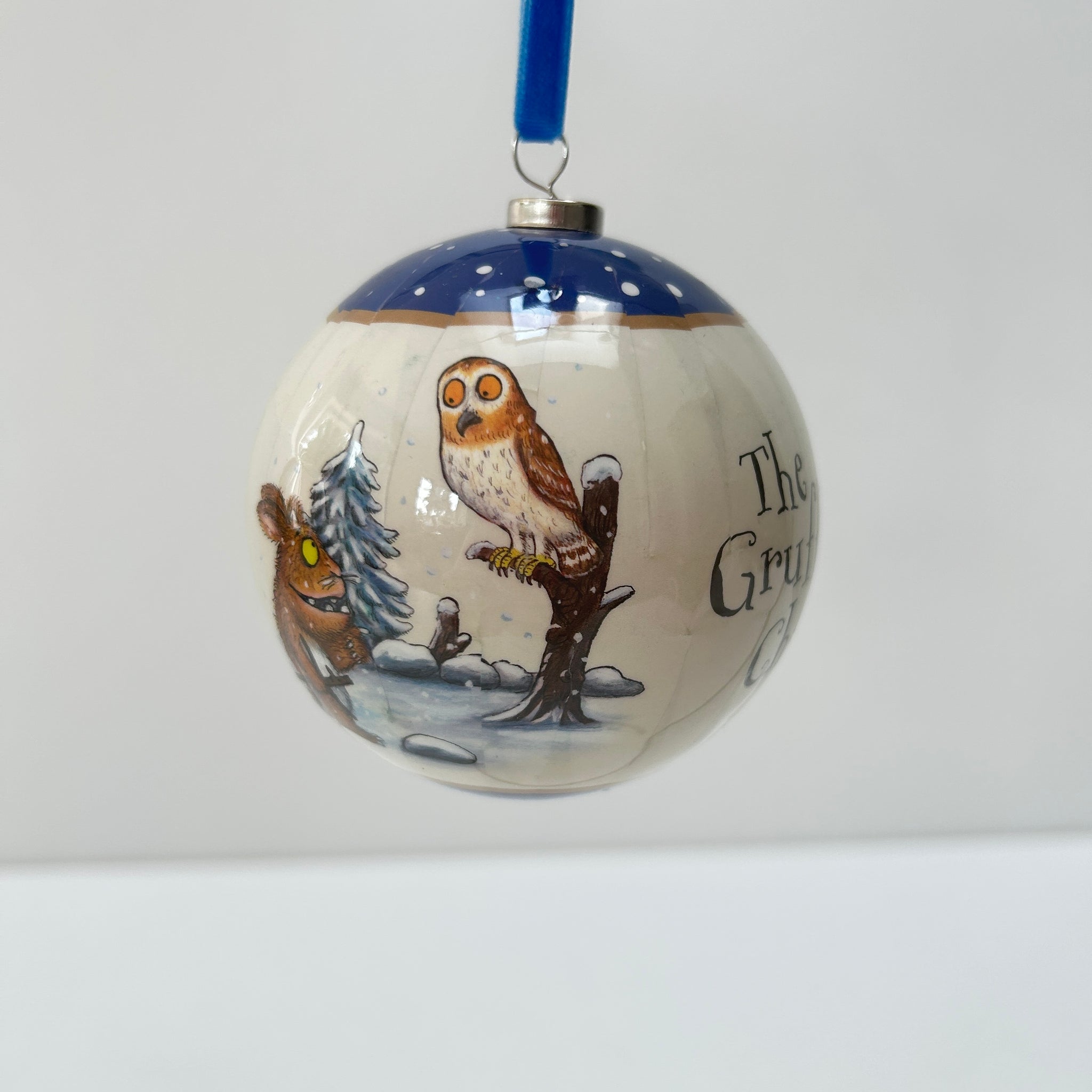 Bring the magic of the deep dark wood to your tree with this delightful Gruffalo’s Child bauble! Made from lightweight polyfoam and decorated with illustrations from Julia Donaldson and Axel Scheffler’s beloved story, it features the Gruffalo cuddling his child beneath a snowy sky.