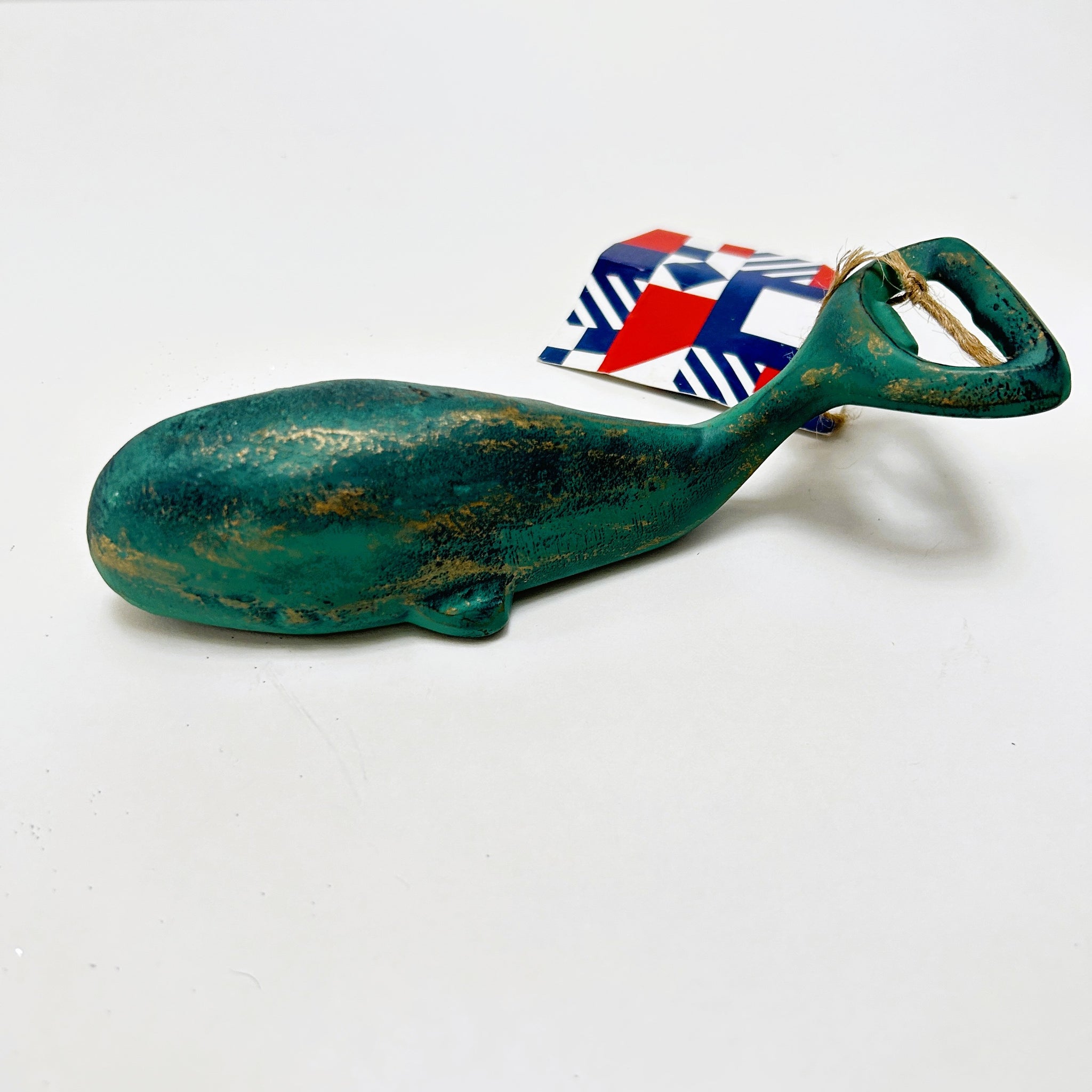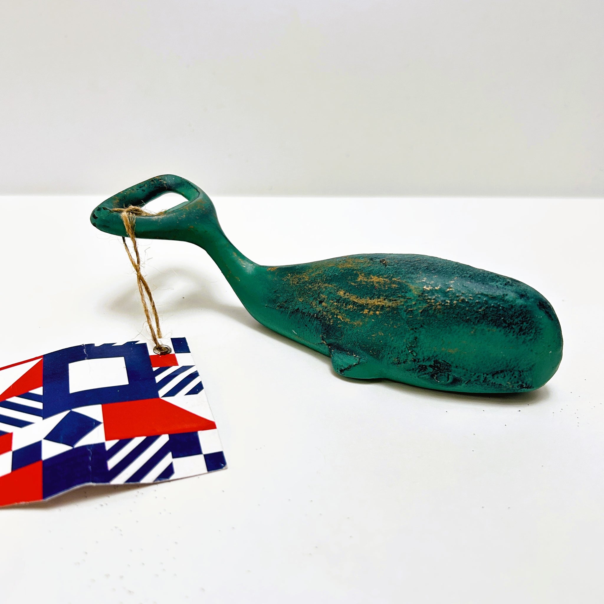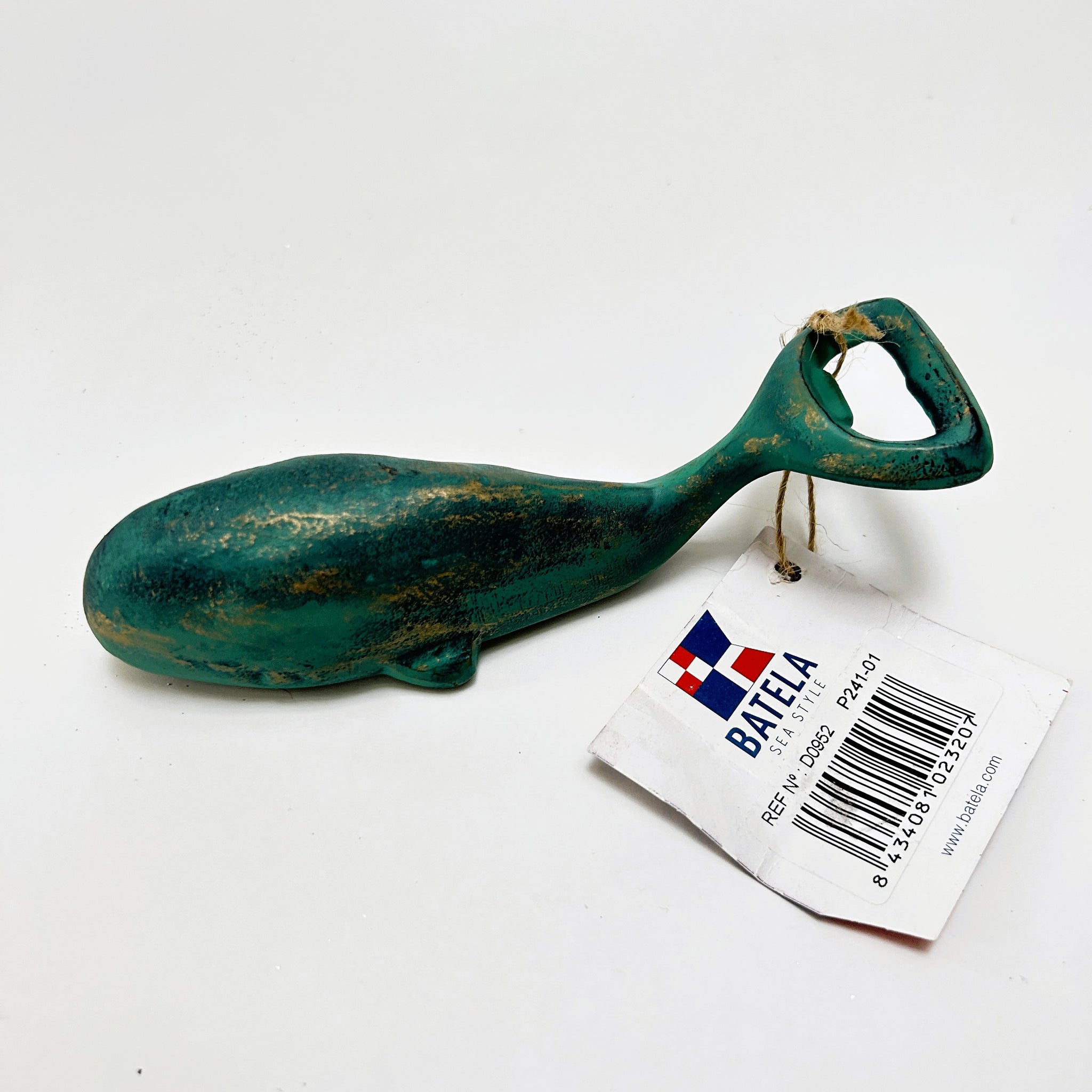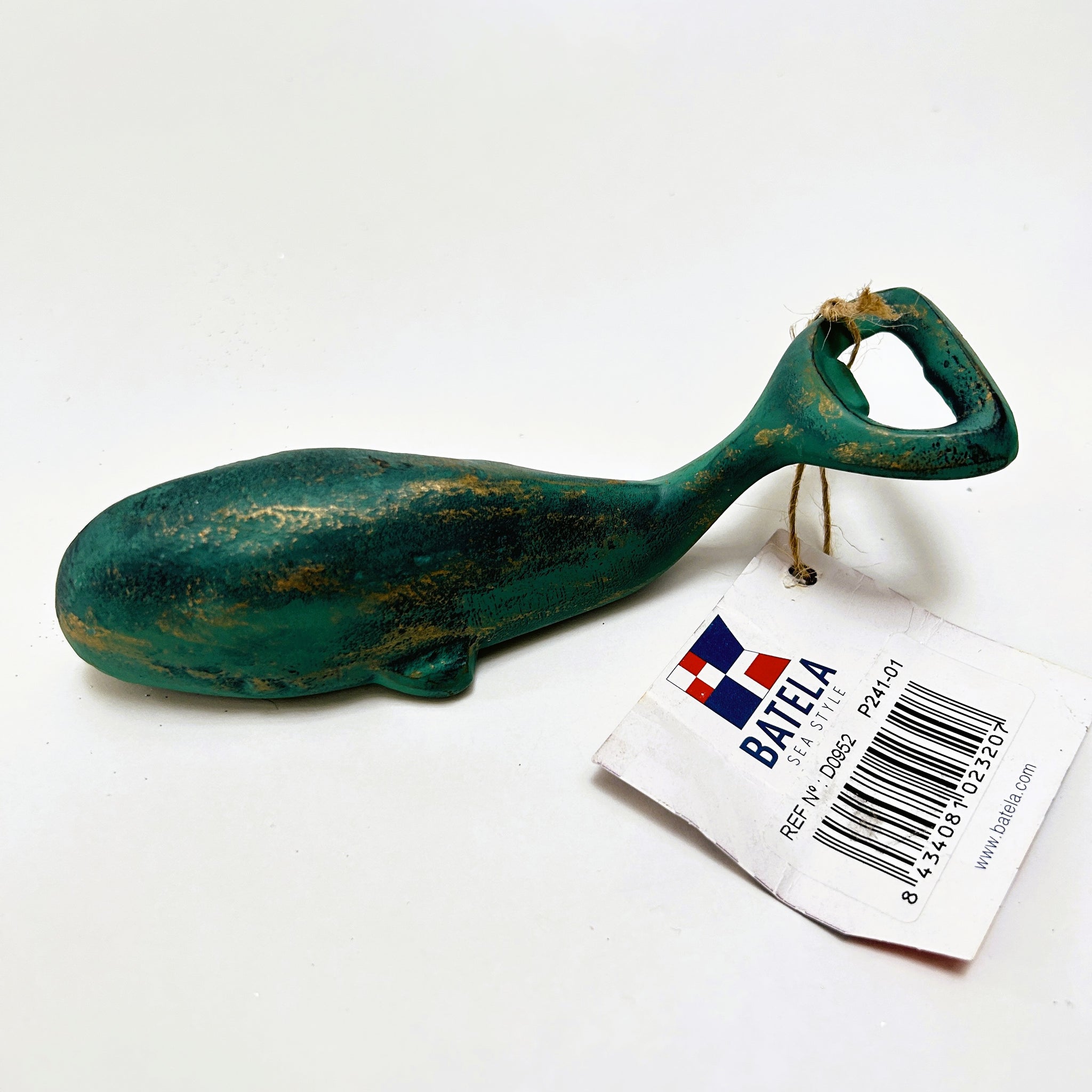 Bring a touch of coastal charm to your home bar with this distressed green whale bottle opener by Batela. Crafted from sturdy metal, it features a weathered finish that gives it a rustic, nautical appeal. The whale’s body forms the handle while the tail doubles as the functional opener, making it both decorative and practical. A stylish accessory for beach houses, kitchens, or as a gift for ocean lovers.