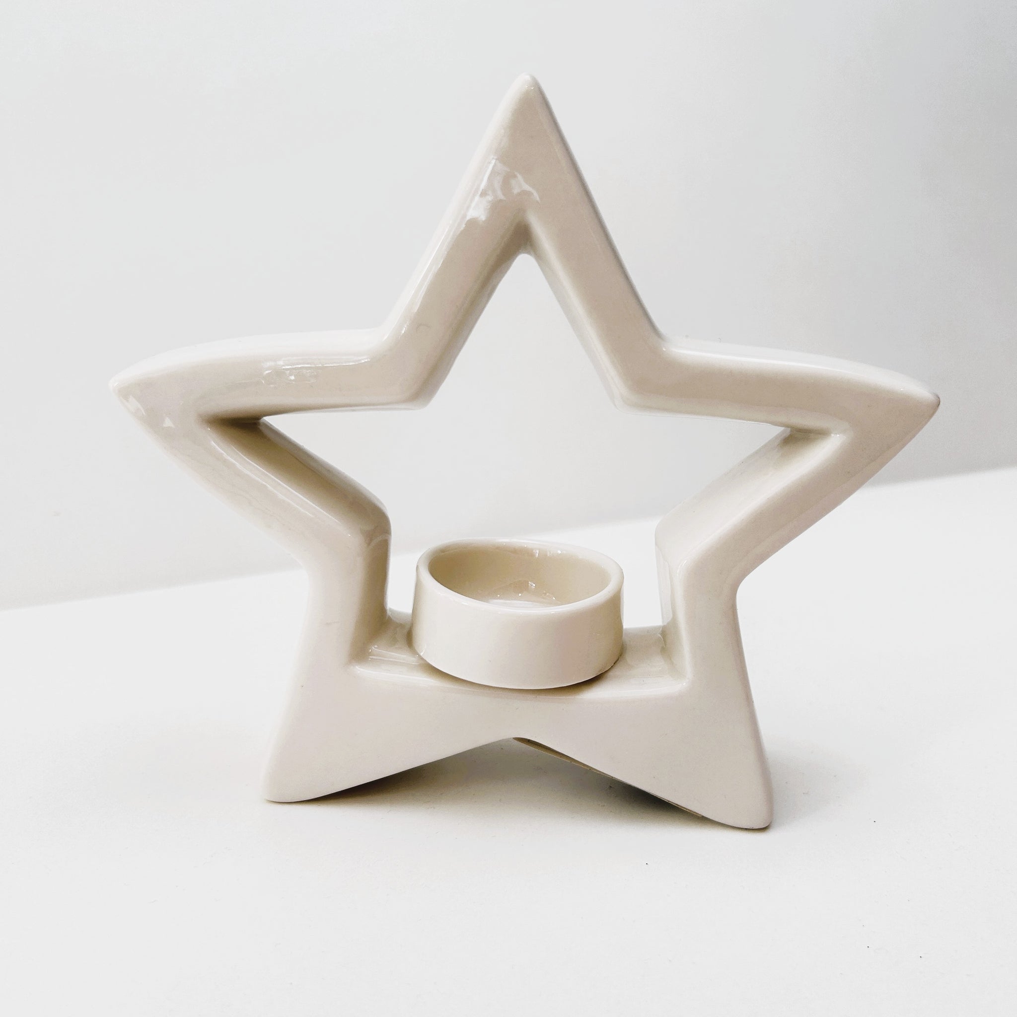 Bring a warm, elegant glow to your home this festive season with this beautifully crafted porcelain star t-light holder. Its glossy white finish and modern star-shaped design make it a versatile decorative piece that suits both contemporary and traditional interiors.