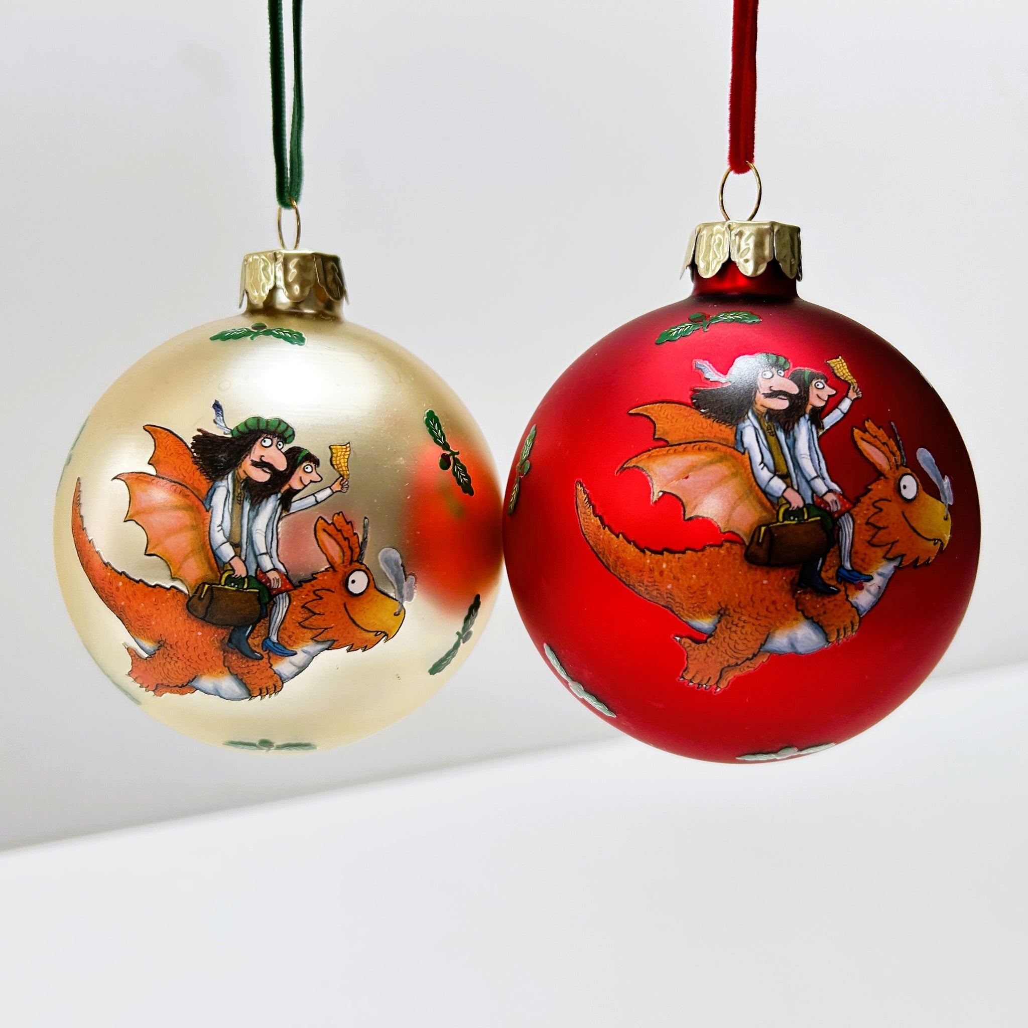 Bring the magic of Julia Donaldson’s beloved story to your Christmas tree with this set of 2 Zog glass baubles. Each bauble features a beautifully illustrated scene of Zog the friendly dragon with Princess Pearl and Sir Gadabout, capturing the warmth and adventure of the much-loved tale.